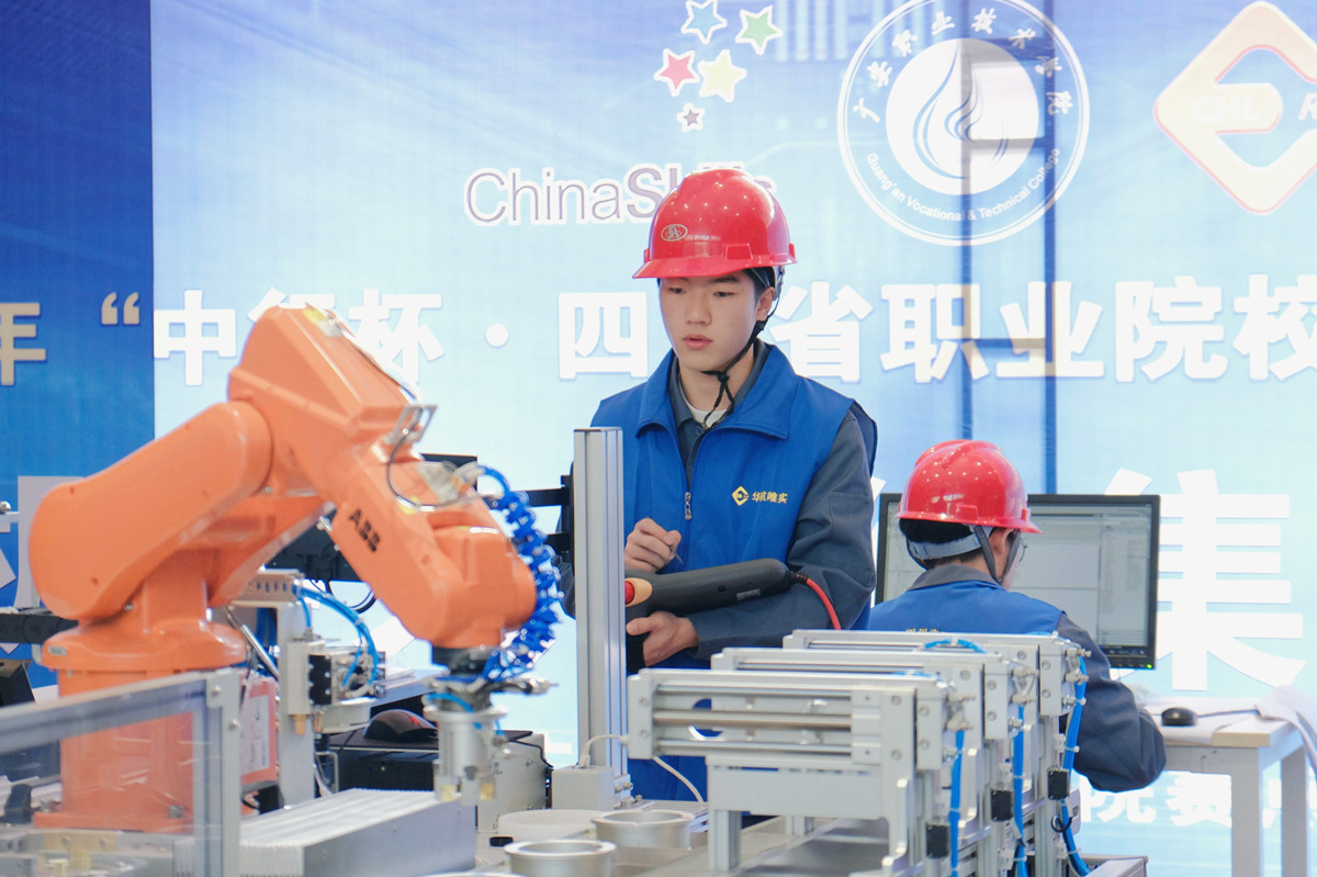 本次大赛为团体赛,每支参赛队由两名选手相互配合,在4小时内协作完成机器人系统集成改造方案、硬件搭建及电气接线、系统集成改造、控制网络的集成调试、职业素养等五项竞赛任务。经过紧张激烈的角逐,学校代表队、四川工程职业技术代表队、泸州职业技术学院代表队获得一等奖,前两个队将代表四川省参加国赛。
