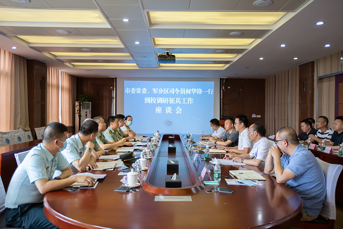 6月15日下午,市委常委、广安军分区大校司令员何华锋,动员处处长王巍、广安区人武部政委朱斌、部长孔祥超一行7人来校开展大学生征兵工作调研。调研座谈会在春晖楼四楼会议室举行,学校党委副书记、校长王义全,党委委员杨建华出席座谈会,会议由王义全主持。