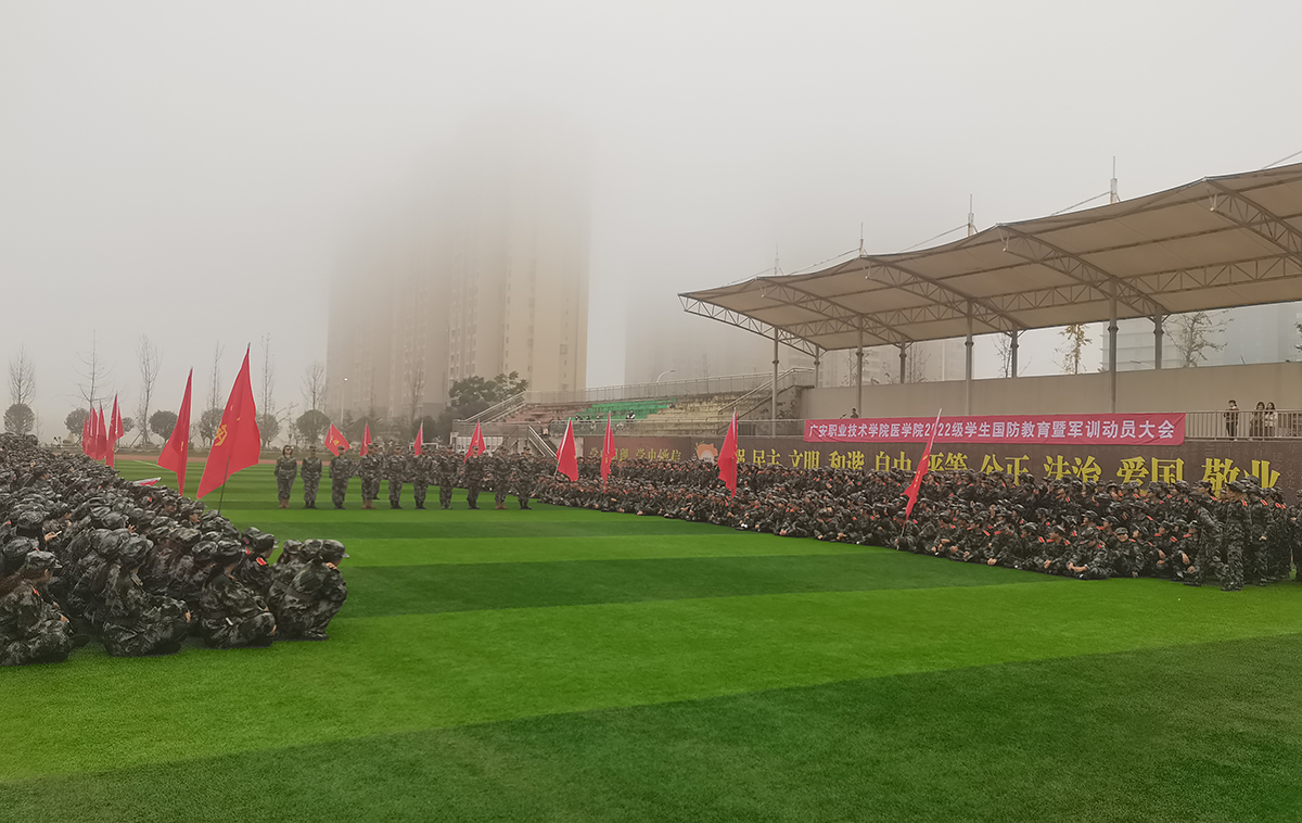 10月31日上午,伟德2022级学生国防教育暨军训动员大会在滨江、奎阁校区田径场同时举行。广安区区委常委、区人民武装部政委朱斌,学校党委副书记陈鹏,学校党委委员、统战部部长杨建华,二级学院党总支书记,相关部门负责人,军训教官,各连队指导员及全体新生参加了动员会。会议由武装部部长、保卫处处长黄宏芮主持。