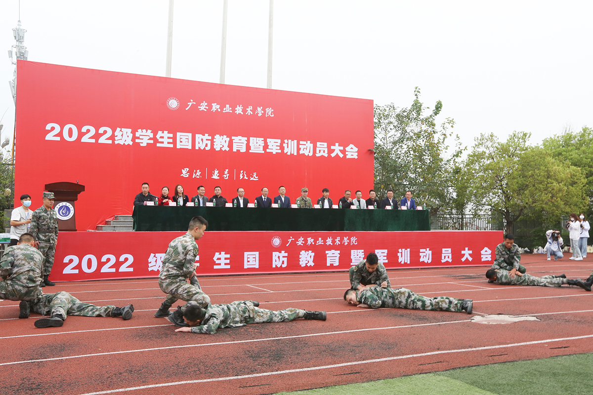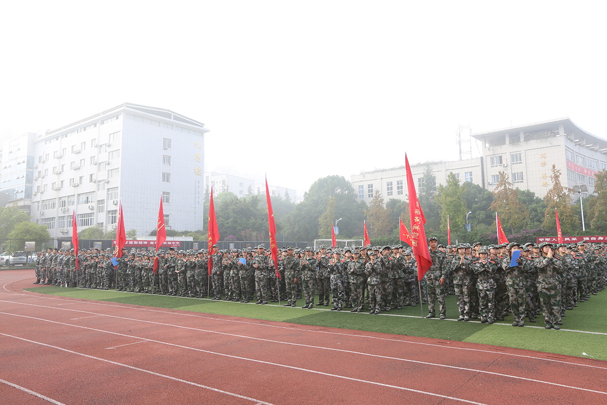 杨建华宣读了学生军训管理规定,军训学员代表郑鸿梅、教官代表刘祥翔分别作了发言,均表达了对军训的期待和完成军训任务的决心;教官队伍现场展示了队列动作、倒功、格斗术、硬功等科目,精彩的展示获得了全场师生雷鸣般的掌声,大会在庄严的《中国人民解放军军歌》声中落下帷幕。