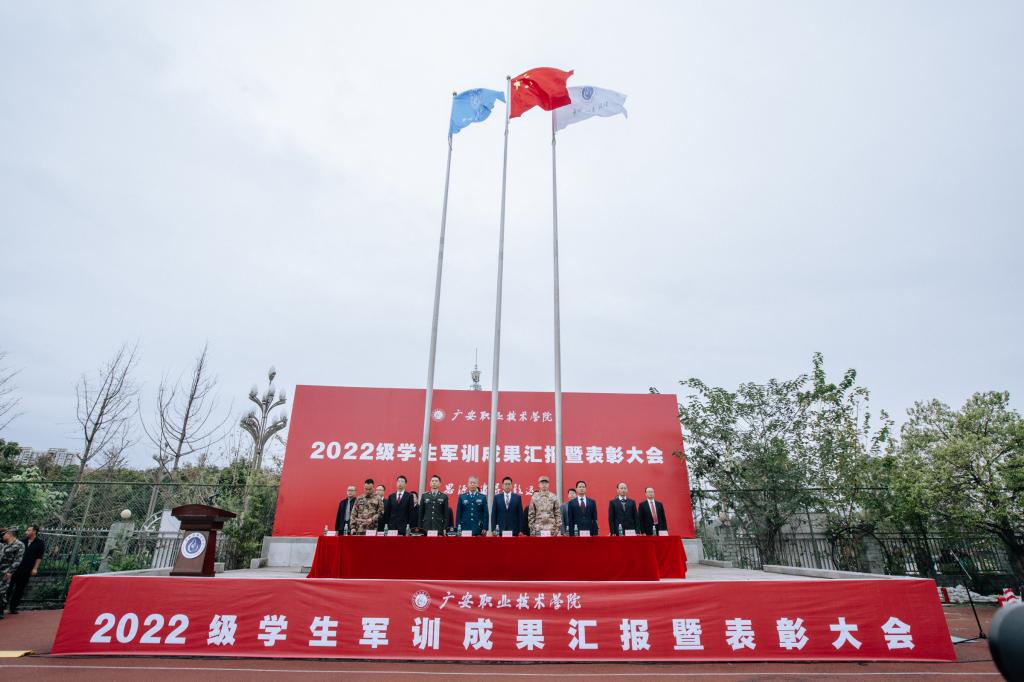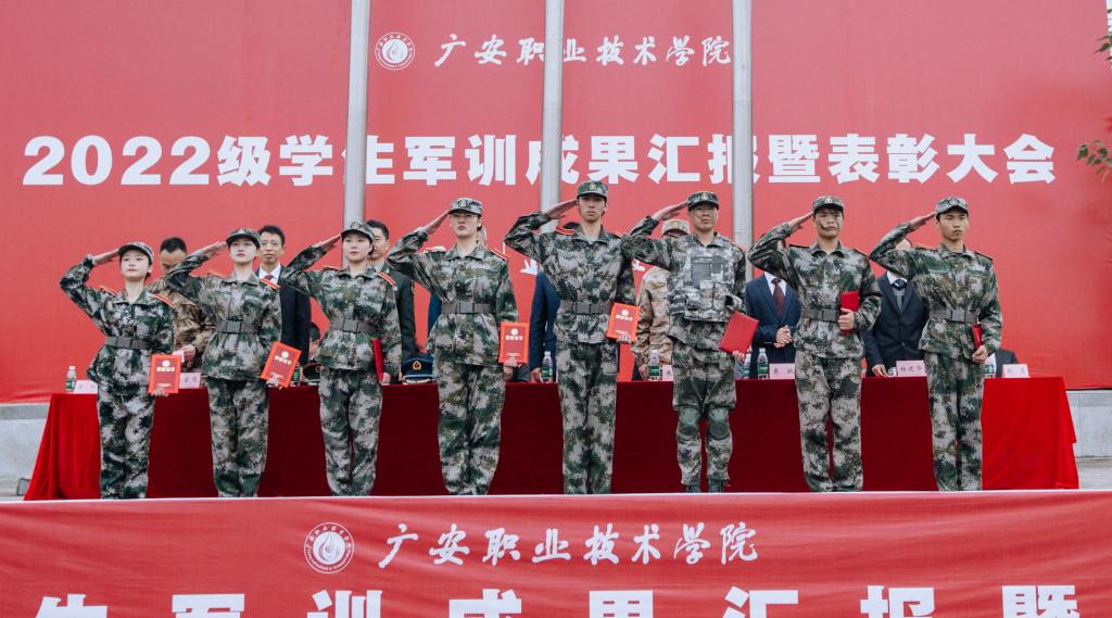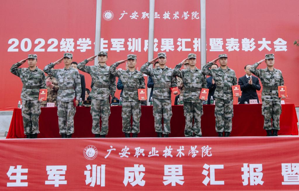 11月12日上午,“请党放心、强国有我”的铮铮誓言响彻广职校园,学校2022级学生国防教育暨军训总结大会在田径场举行。广安军分区政委汪世永、战建处处长罗欣,广安区人武部政委朱斌,学校党委副书记、校长王义全,纪委书记王宇平,副校长袁驰,统战部部长杨建华,二级学院院长和相关部门负责人出席大会。大会由学校武装部部长黄宏芮主持。