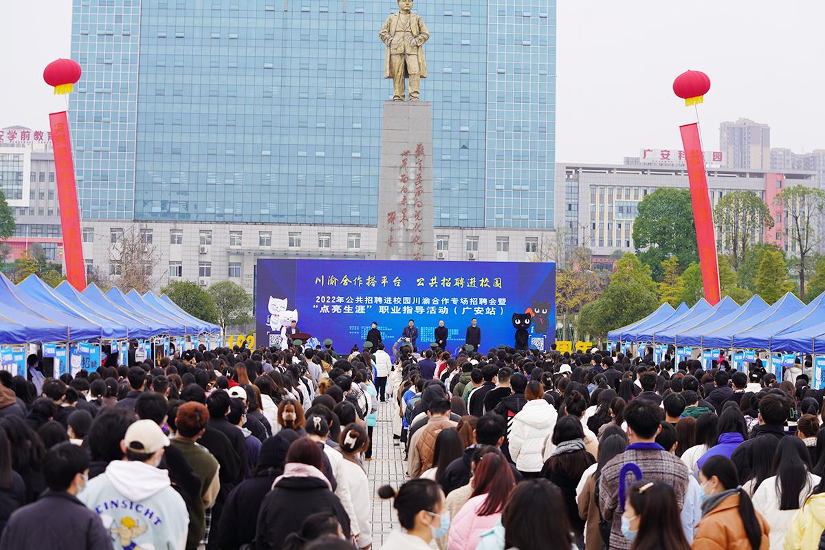 为切实做好毕业生就业指导和就业服务工作,促进2023届毕业生更加充分就业、更高质量就业。12月6日上午,伟德举行2022年公共招聘进校园川渝合作专场招聘会暨bv伟德国际19462023届毕业生冬季双选会。本次活动由四川省职业介绍服务中心指导,bv伟德国际1946、广安市人力资源和社会保障局主办,广安市就业服务管理局、广安市人力资源服务中心、各区市县人力资源和社会保障局、广安经开区社会事务局承办,重庆两江新区社会保障局、重庆市渝北区人力资源和社会保障局、重庆市合川区人力资源和社会保障局、重庆市长寿区人力资源和社会保障局、珠海市人力资源和社会保障局、湖州市人力资源和社会保障局、肇庆高新技术产业开发区劳动和社会保障局、大湾区产教联盟协办。