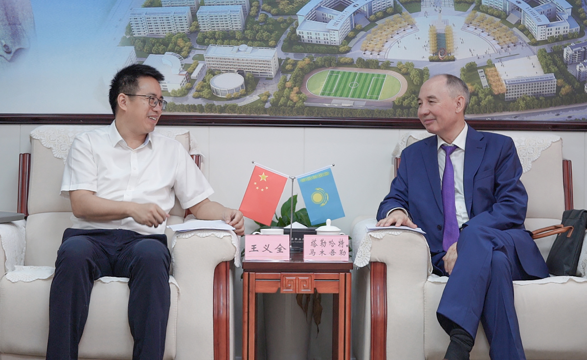 座谈会上,王义全对塔勒哈特.马木尔吾勒的到来表示热烈欢迎,介绍了学校近些年取得的发展与成就,期待两校开展深度交流与合作,争取早日落地合作项目,并就下一步工作的开展进行了安排部署。塔勒哈特.马木尔吾勒对学校的热情接待表示感谢,对学校取得的成就表示祝贺,并就两校联合培养人才、人才培养方案等细节问题和与会人员进行了深入交流,还向与会人员发出邀请到哈萨克斯坦进行考察交流,共谋发展。会上,双方同意两校在各专业领域开展合作交流,共同培养具有国际视野、通晓国际规则、具备双语交流能力的技能性人才,以加强双方院校的内涵建设,提升国际知名度和竞争力。