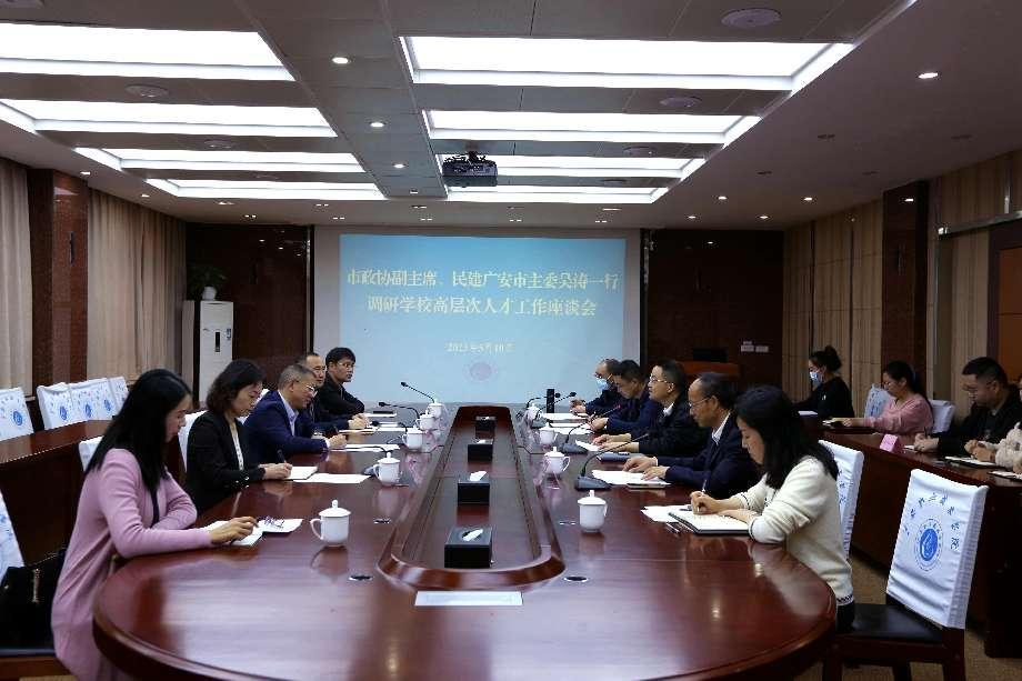 5月10日上午,民建广安市委主委、市政协副主席吴涛率队到学校调研干部人才工作。