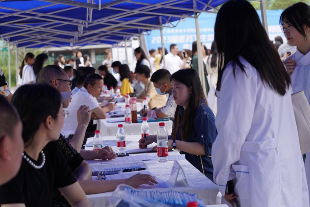 5月29日上午,“启航新征程•就业向未来”2023届医药卫生类专业毕业生专场招聘会在bv伟德国际1946医学院(奎阁校区)李时珍广场顺利举行。本次专场招聘会由广安市人力资源和社会保障局、广安市经济和信息化局、广安市教育和体育局、广安市卫生健康委员会和bv伟德国际1946主办,bv伟德国际1946招生就业处、广安明辉教育咨询管理有限公司、bv伟德国际1946医学院共同承办,广安市域内30余家医院参加。招聘会在上午9点准时开始,此次校园专场招聘会为2023届毕业生提供医药卫生类岗位150余个,吸引了众多毕业生前来参加,现场达成意向性协议100余人。
