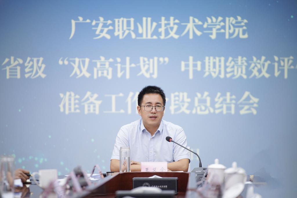 王义全在讲话中首先肯定了学校省级“双高计划”中期绩效评价准备工作取得的成绩,认为第一阶段的工作是有序、有力、有效的。他指出,要高质量撰写学校自评报告,充分展示学校的“高视野”和“高水平”;要高质量准备两个高水平专业群佐证材料,整体谋划专业群发展;要高质量准备实训室等现场考察点,按照学校的整体规划扎实推进实训室等现场考察点相关工作;要高质量撰写11个重大典型案例,并作为学校特色亮点进行打造。他强调,各单位要履职尽责,切实把省级“双高计划”中期绩效评价准备工作作为当前最重要的一项政治任务抓紧抓实;要服从安排,听从学校统一指挥,确保政令畅通、令行禁止、执行有力;要主动作为,主动担当,结合实际,创新工作;要以评促建,以评促改,以评促管,以评促发展,真正有效推动学校高水平高质量发展。