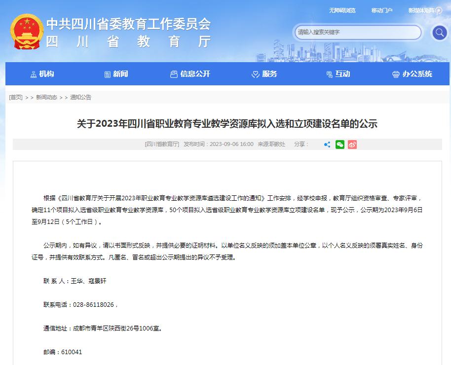 9月6日,四川省教育厅发布了《关于2023年四川省职业教育专业教学资源库拟入选和立项建设名单的公示》,伟德工业机器人技术专业教学资源库(主持)、小学语文教育专业教学资源库(联合主持)成功入选立项建设名单,实现了省级专业教学资源库零的突破。