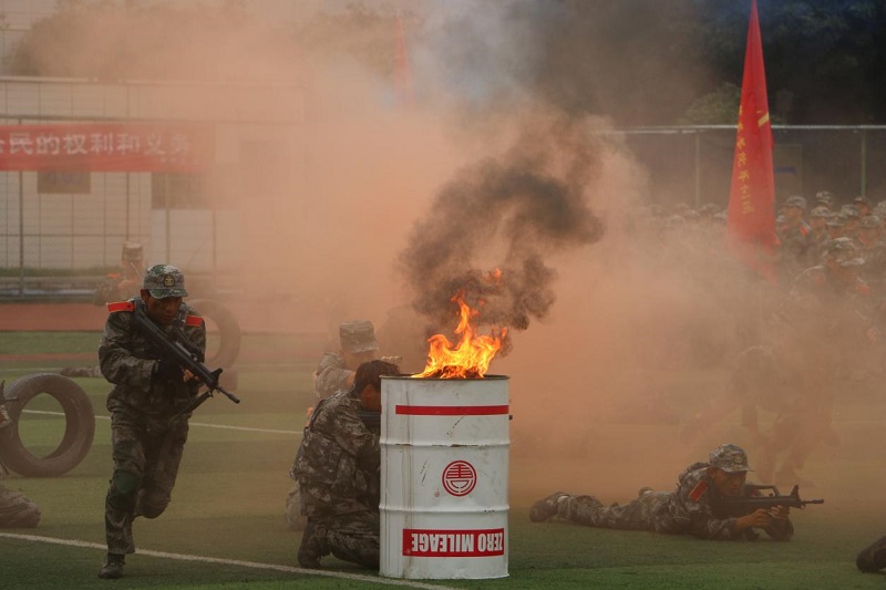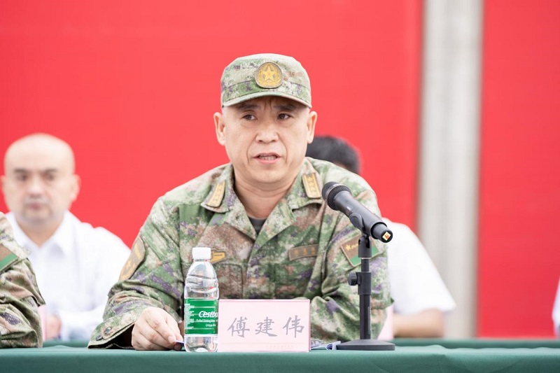 傅建伟司令员代表广安军分区对学校国防教育取得的成果给予高度赞扬,高度评价学校综合办学水平,肯定学校在征兵工作中取得的优异成绩。希望同学们把军训成果转化为努力学习、刻苦钻研的强大动力,发扬军训精神,学好知识、增长才干,并牢固树立居安思危的国防意识,积极为国防建设、强军征程贡献自己的智慧和力量。