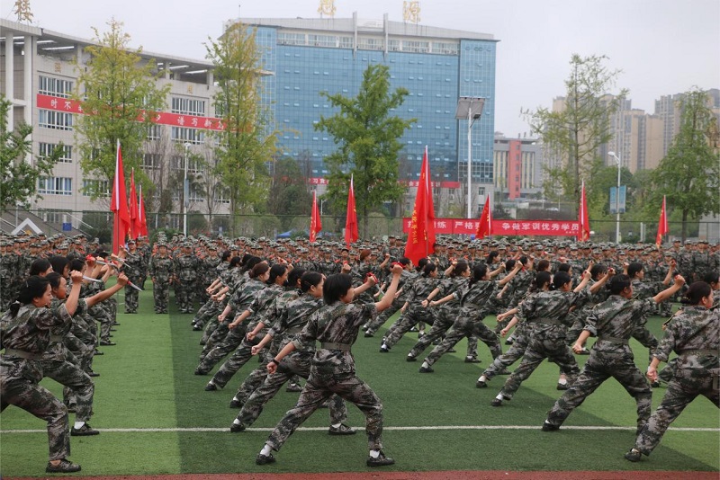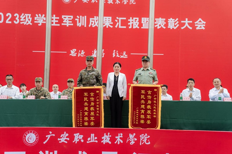 王冬霞书记代表学校向承担本次军训任务的广安武警支队、广安区人武部赠送了锦旗,表达了学校对承训官兵的感激之情。同时与同学们分享了四点希望:一是希望同学们要有理想信念,坚定报国之志,树立共产主义远大理想,为实现中华民族伟大复兴,贡献出青年一代的强大力量;二是希望同学们要有才干本领,要把学习作为首要任务,勉励同学们只有勤奋学习,才能增长本领,青春才会更加绚丽;三是希望同学们要有责任担当,要有使命在肩的责任意识,为实现中华民族伟大复兴中国梦的历史使命不懈奋斗;四是希望同学们要有高尚品格,要认真学习并践行社会主义核心价值观,要明大德、守公德、严私德,充分展示小平故里新青年形象,志存高远,脚踏实地,做有理想、敢担当、能吃苦、肯奋斗的新时代好青年,在拼搏奋斗中书写自己的精彩人生!
