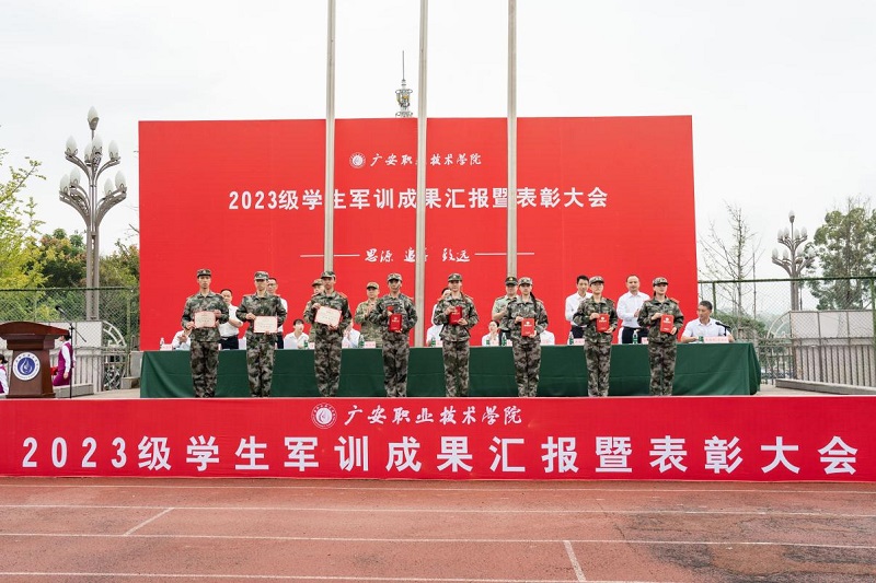 汇报表演结束后,罗龙海副校长宣读了《bv伟德国际1946关于表扬2023级学生军训先进集体和个人的决定》;学校、广安区人武部、广安武警支队相关领导为军训中表现突出的优秀连队、优秀学员、优秀教官等集体和个人颁发了获奖证书,军训学员代表谢华华作了发言。