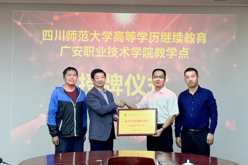 10月13日,四川师范大学高等学历继续教育bv伟德国际1946教学点授牌仪式在学校春晖楼四楼会议室隆重举行。学校党委委员、副校长袁驰出席会议并致辞。授牌仪式由继续教育学院院长王秋林主持。