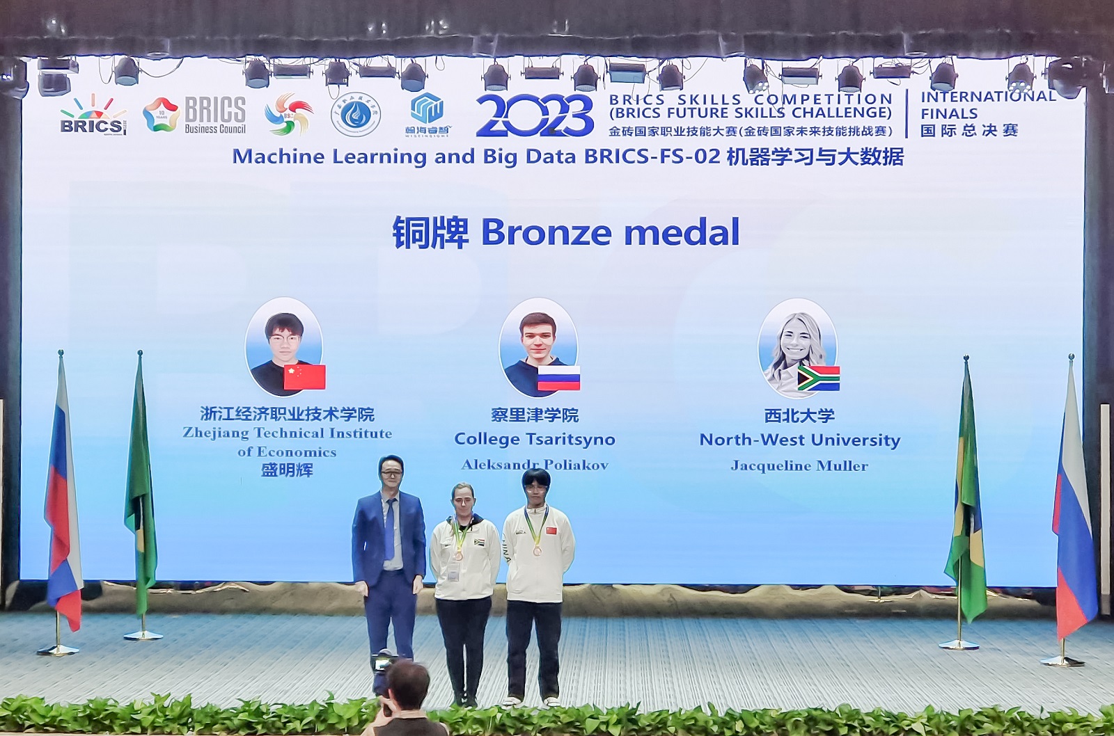 11月10日上午,bv伟德国际1946承办的2023金砖国家职业技能大赛机器学习与大数据赛项国际总决赛顺利完成各项比赛,圆满落下帷幕。