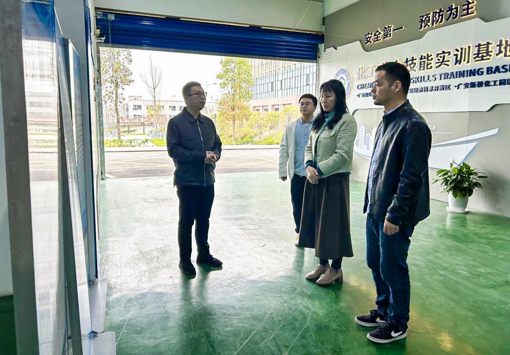 宣凤琴一行首先参观了伟德化工安全技能实训基地和虚拟仿真实训中心。李远鹏向宣凤琴一行介绍了基地基本情况和运行状况。