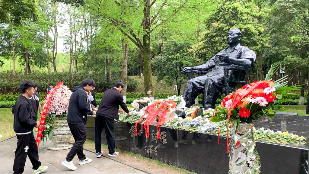 在邓小平铜像广场,团员们肃立致敬,依次献上鲜花,并庄严地宣誓:以先烈为榜样,发扬无私奉献、英勇无畏精神,听党话、跟党走,坚定理想信念,牢记党的教诲、听从党的号召,认真践行社会主义核心价值观,以青春之我,勇担时代重任,不负韶华,不负时代,不负人民,在青春的赛道上奋力奔跑,为实现中华民族伟大复兴贡献青春力量!