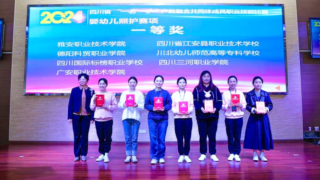 此次大赛提升了四川省养老、托育及幼教行业队伍技能水平,推动了“政、行、企、校”产教良性互动,促进了校企同台竞技,推动了养老、托育及幼教行业高质量发展。自接到参赛通知以来,学院高度重视,认真研读文件要求,并组建指导团队开展有针对性的赛事项目训练。比赛过程中,邓娟老师克服场地、设备不熟悉等困难,沉着应对、发挥稳定,最终斩获一等奖,充分展示出扎实的专业技能和良好的综合素质。