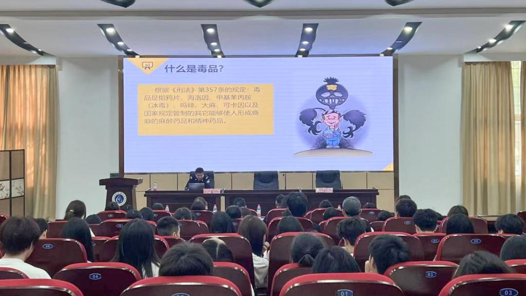 最后,禁毒支队何俊峰围绕禁毒工作主题为在场同学讲授毒品的种类、危害以及犯罪成本等方面知识,促进青年大学生树立防毒拒毒意识,共同牢筑无毒校园安全防线。