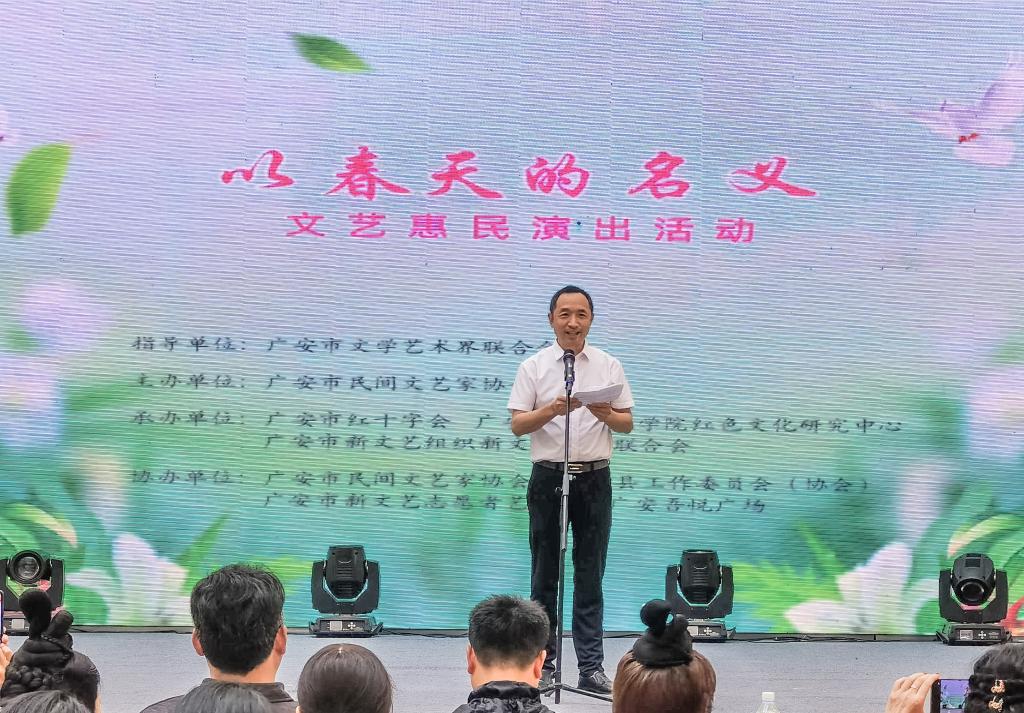 4月21日下午,广安市吾悦广场一楼大厅人潮涌动,欢声雷动。一场由广安市民间文艺家协会主办、红研中心积极参与承办的“以春天的名义”惠民文艺演出在此热烈上演,为春意盎然的午后增添了一抹浓郁的文化色彩。