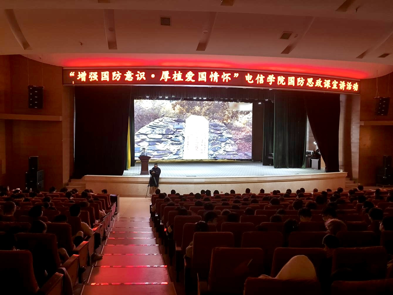 宣讲活动以“增强国防意识·厚植爱国情怀”为主题,深刻阐述了习近平强军思想和关于国防教育的重要论述,从铁心向党、心怀人民、钢铁长城、全民国防四个篇章,以“串讲+视频+朗诵+合唱”的形式全面回顾了党史、军史、新中国史。宣讲报告重温了三湾改编、古田会议、南昌起义、长征、抗美援朝、中印冲突等重大历史事件,报告了毛岸英、黄继光、邱少云、罗盛教、柴云振、李波等不同历史时期的战斗英雄的光辉事迹,钱学森、邓稼先等爱国知识分子为新中国的建设和发展作出的无私贡献,中国空军试飞员“忠诚、无畏、精飞”的“试飞精神”,展现了我国全力推进改革强军的巨大成就,讲述了守岛夫妇王继才、王仕花坚守开山岛、最美拥军人物饶定双等人的感人事迹。全场师生深受感染、备受鼓舞,纷纷表示将继承和发扬中国共产党人坚持真理、坚守理想、不怕牺牲、英勇斗争的高尚品质和崇高精神,以革命先辈为榜样,坚定不移听党话、跟党走,努力学习专业技术知识,努力成为堪当民族复兴重任的时代新人,不辱时代使命,不负人民期望。