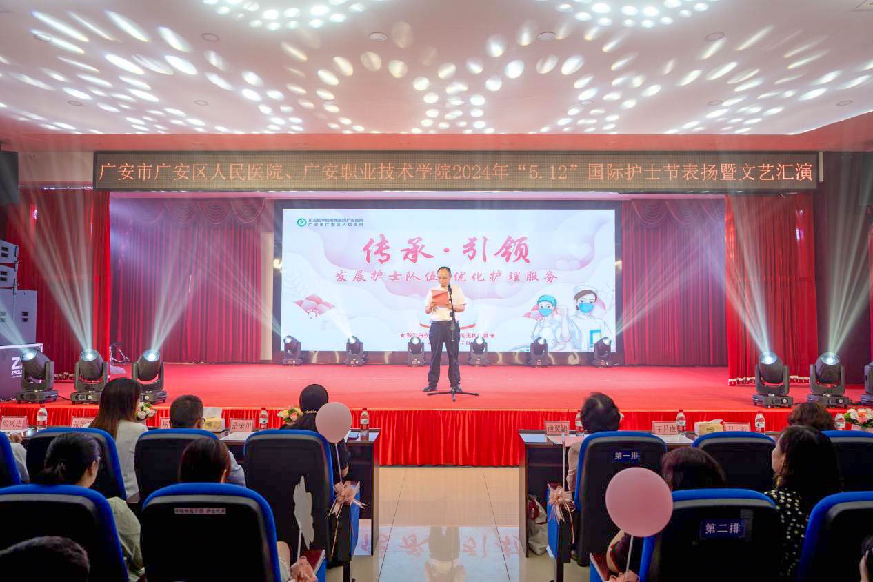 5月7日,bv伟德国际1946医学院与广安区人民医院携手合作,在医院附属楼4楼会议厅共同举办了以“传承·引领——发展护士队伍优化护理服务”为主题的“5·12”国际护士节表扬大会暨文艺汇演,共同庆祝第113个国际护士节。医学院院长杨书琴、副院长贺洪军及师生代表参加了此次活动。