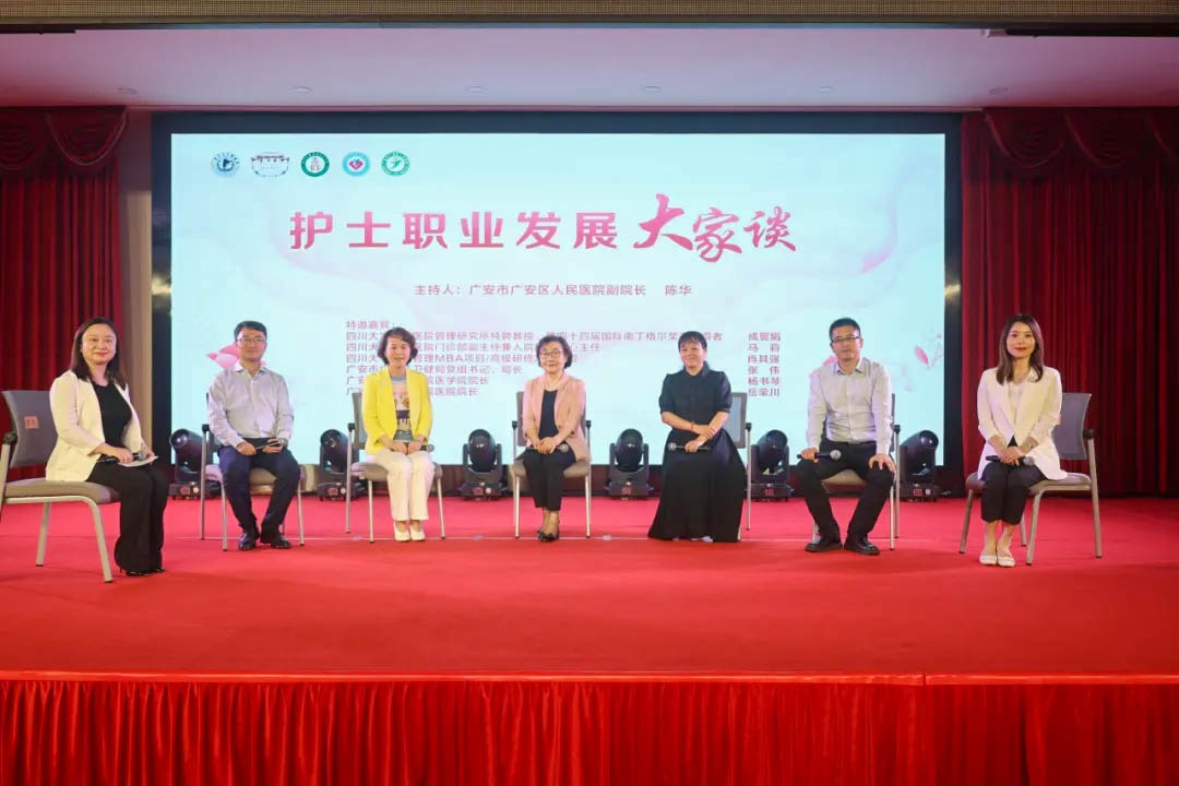 广安区人民医院副院长陈华主持圆桌会议“护士职业发展”大家谈。活动中,第四十四届国际南丁格尔奖章获得者、四川大学华西医院管理研究所特聘专家成翼娟教授,四川大学华西医院门诊部副主任兼入院服务中心主任马莉教授,四川大学医院管理MBA项目/高级研修项目主管肖其强老师,广安市广安区卫健局党组书记、局长张伟,bv伟德国际1946医学院院长杨书琴,川北医学院附属医院心内科教授、广安区人民医院院长岳荣川共同围绕“护士职业发展”这一主题展开了精彩的对话。护士职业发展在护士实现自身价值、优化医疗品质过程中是一个永恒的话题;护士职业发展应该得到社会更多的关注,得到医疗界的重视,成为护士实现理想、推动医疗护理事业发展的动力。