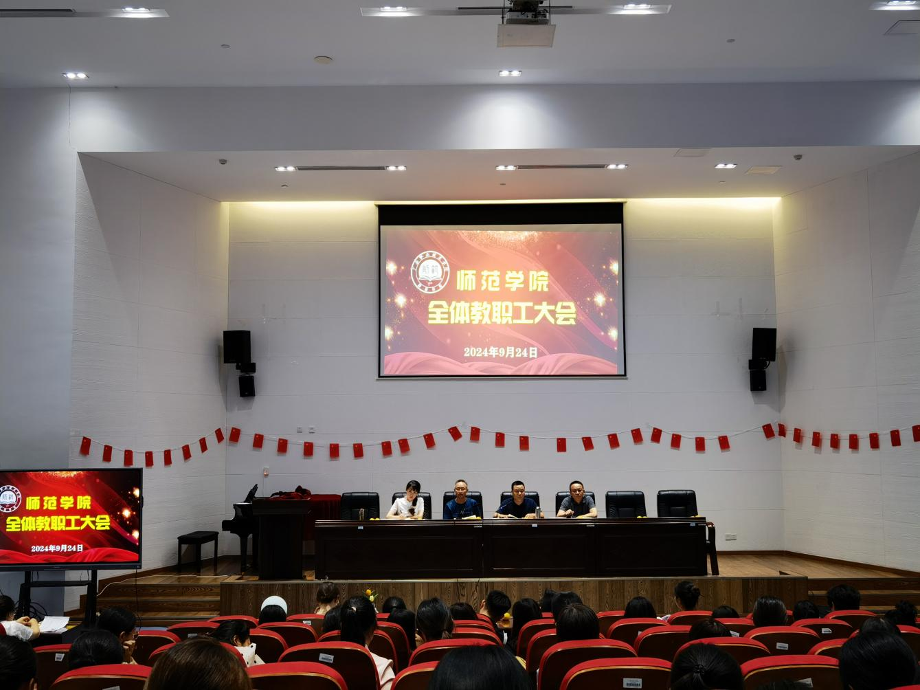 为顺利推进本学期各项工作,进一步完善学院常规管理,9月24日下午,师范学院召开了2024年秋季学期第二次教职工大会,学院全体教职工参加了此次会议,大会由学院副院长贺雪萍主持。
