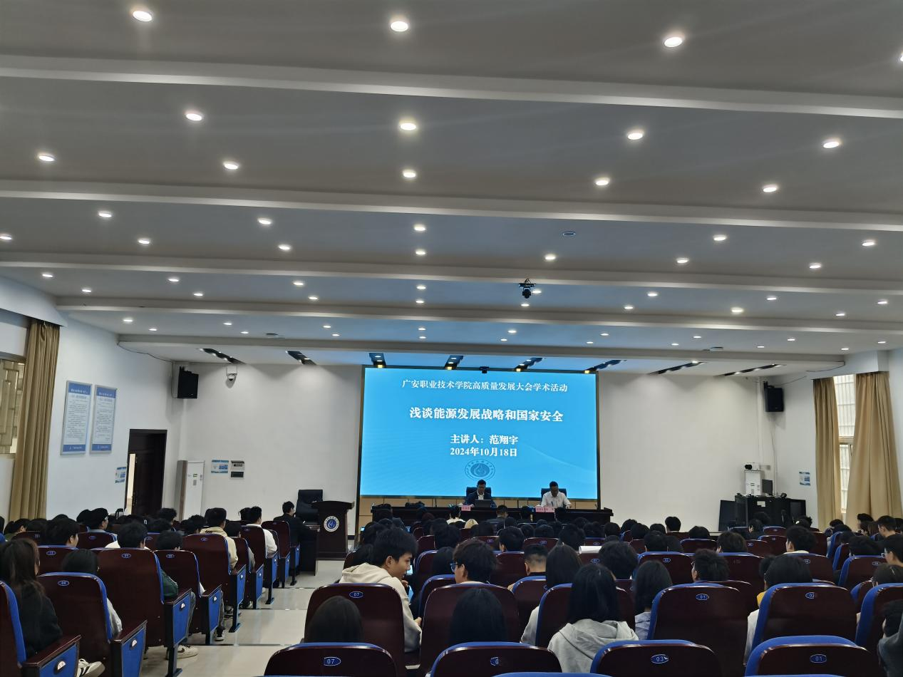 2024年10月18日上午,西南石油大学南充校区副校长、国家自然资源部高层次科技创新领军人才、四川省“天府青城计划”天府名师范翔宇教授在滨江校区先圣厅开展“浅谈能源发展战略和国家安全”专题讲座,讲座由学校党委委员、副校长袁驰主持。