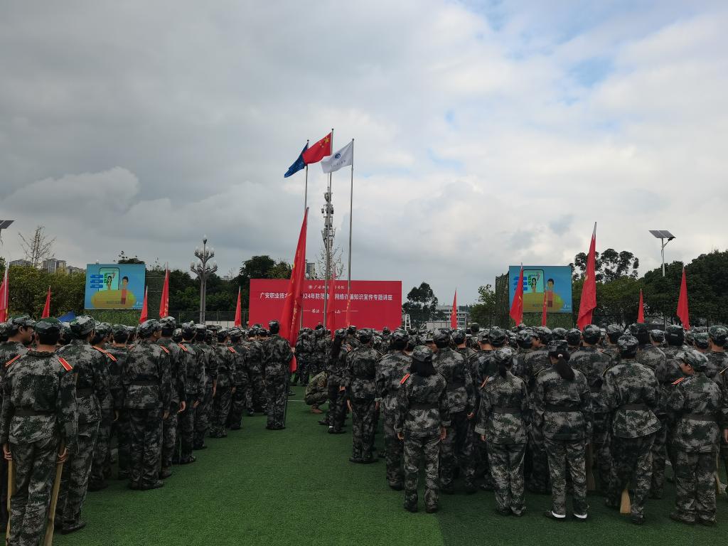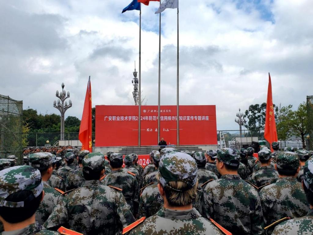 2024年10月17日下午,学校在足球场举办2024年防范电信网络诈骗知识宣传专题讲座。广安市公安局广安区公安分局协兴派出所副所长易权龙应邀为2024级新生作专题讲座。