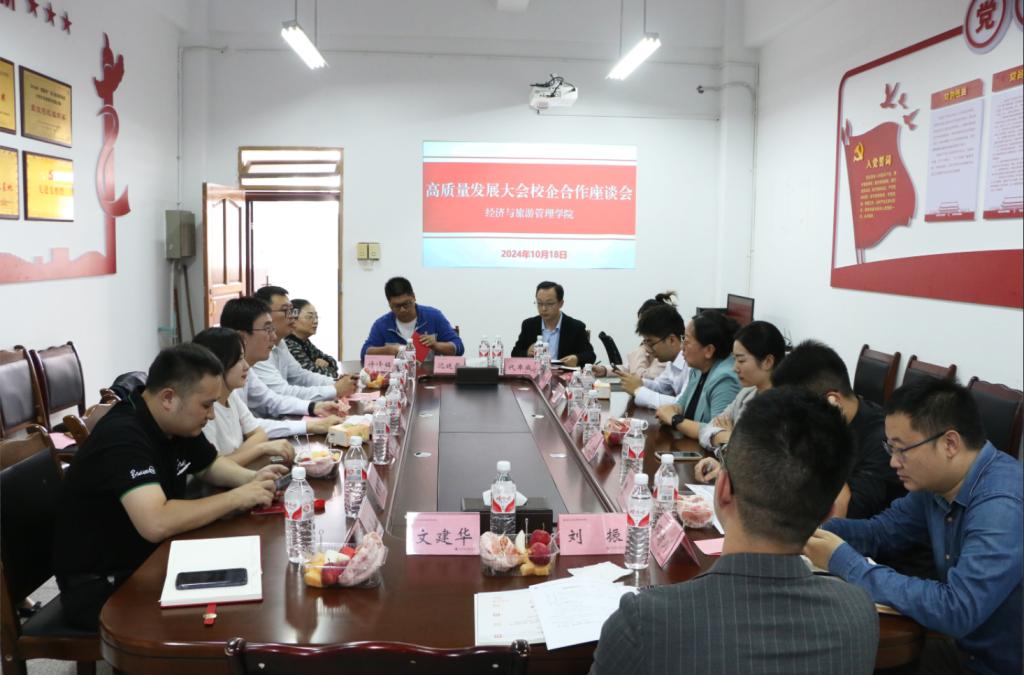 在学校举行高质量发展大会之际,10月18日,经管学院在明德楼213召开高质量发展校企合作座谈会。北京京东乾石科技有限公司西南大区总监杜秋红、中联集团科技有限公司四川总经理曹禹、京东零售集团校企合作大区负责人金星星、广安希尔顿逸林酒店运营总监刘振等18位校企合作企业代表出席本次会议。会议由学院院长晏榆洋主持。