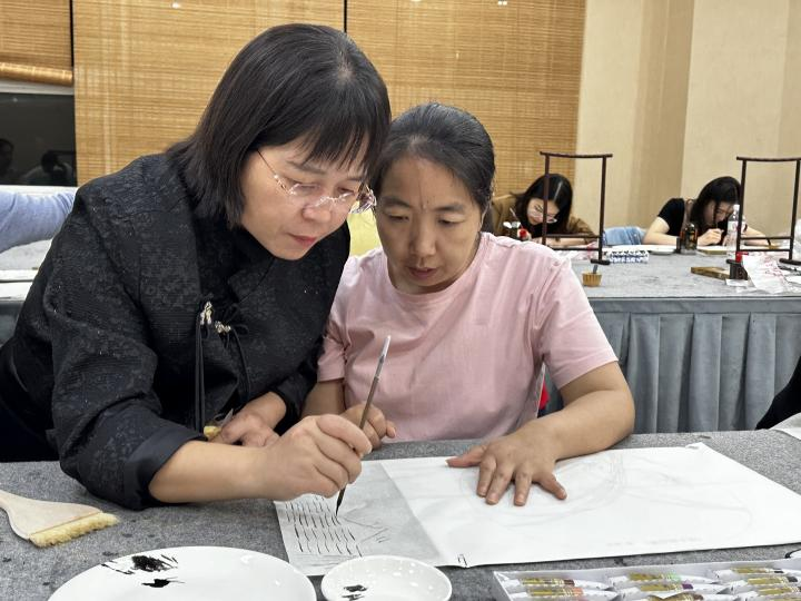 课堂上,红色文化研究中心副主任,《中国画》课程负责人,校级高水平教学骨干唐清华副教授为大家详细介绍了国画的内涵、工具材料的性质、基本步骤和绘画技巧,展示了国画中白描画运笔技巧,之后引导大家在宣纸上进行绘画练习。老师们认真跟学、跟练,大家相互交流、相互探讨,分享彼此的经验和心得。