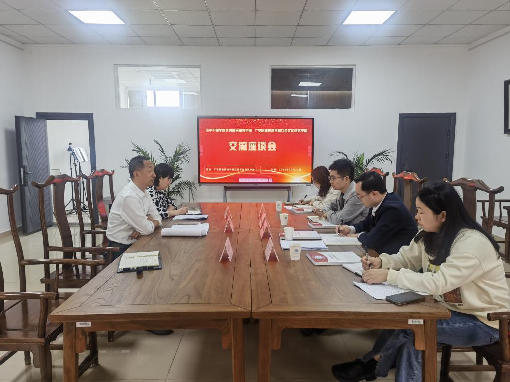 10月23日下午,小平干部学院乡村振兴研究中心与学校红色文化研究中心在会议室举行交流座谈会。小平干部学院(广安市委党校)院(校)务委员、博士阳金平,科研部负责人、乡村振兴研究中心执行主任袁廷刚,科研部、乡村振兴研究中心干部贺云、宋雪梅及bv伟德国际1946红色文化研究中心主任曹馨,副主任、副教授唐清华、副教授向黎立参加了座谈会。