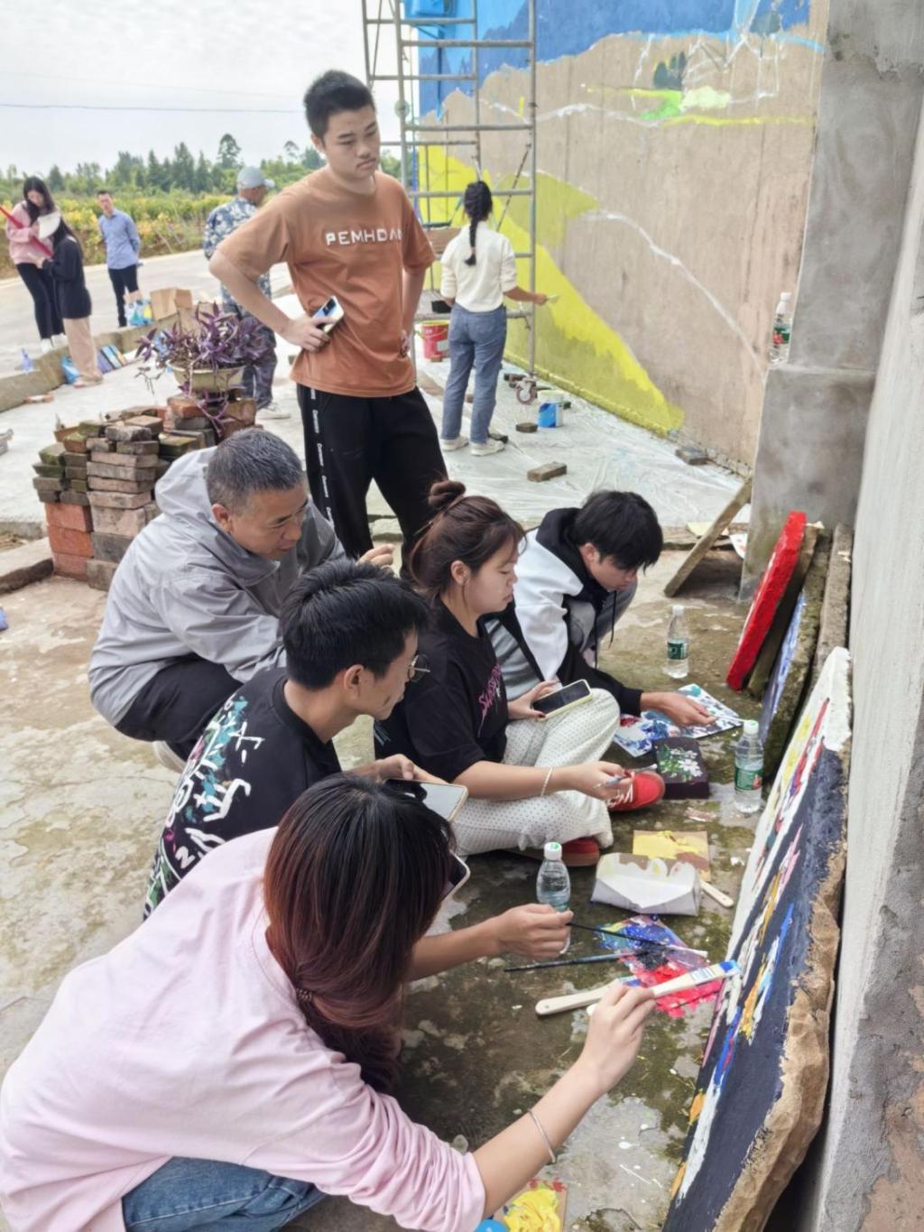 本次艺术采风活动,将艺术创作与乡村振兴紧密结合,学院组织专业教师团队带领书画艺术专业30余名学生开展“留住乡愁”乡村公益墙绘暨艺术采风活动,免费为村民绘制大型“看得见山,望得见水,记得住乡愁”主题的墙绘及多幅农家小景装饰画,在镇政府相关领导的指导下,有序顺利的开展了绘制工作,其间得到村民的大力支持和称赞,有效提升了地域文化知名度,促进了乡村农旅融合与乡村振兴的“金色”产业发展。同时,活动还特设公益课堂,邀请当地儿童参与艺术创作,激发了他们对美的追求和创造力,为乡村文化振兴贡献了教育力量。