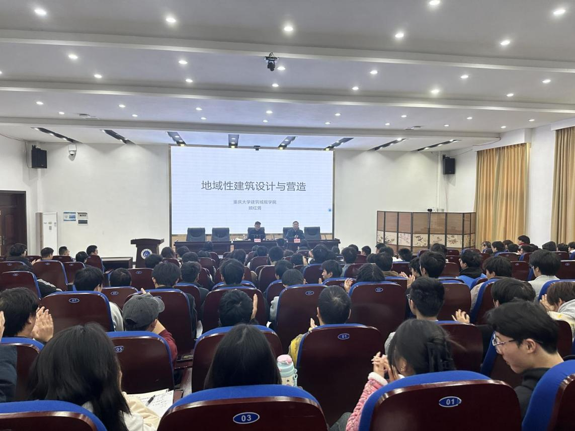 顾红男教授以“地域性建筑设计与营造”为主题,详细阐述了红色文化在现代建筑设计中的应用与发展。在讲座中,顾红男教授通过一系列生动的建筑实例,分析展示了红色文化与建筑在不同环境、不同地域、不同民族中的完美融合,他指出,红色建筑特别是以邓小平故居陈列馆、遵义会址等为代表的红色文化建筑群,不仅是历史的见证,更是精神的传承,它们承载着革命先辈的英勇事迹和崇高精神,对于激发民族自豪感和历史责任感具有不可替代的作用。同时他在红色建筑中关于细部构造、建筑技艺、建筑材料等方面独到且深刻的见解,为师生们提供了全新的视角和思考。