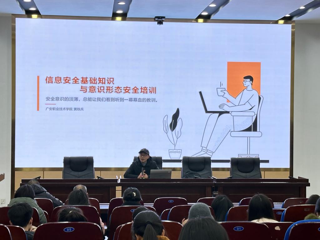 培训由网络信息科科长黄铁兵老师主讲。黄老师以扎实的专业知识和深入浅出的讲解方式,围绕信息安全基础知识、实用防护技巧以及意识形态安全等关键内容展开。他通过生动的案例分析,将复杂的理论转化为贴近实际、易于掌握的知识点,使与会老师在轻松的氛围中获得实用的网络安全技能。