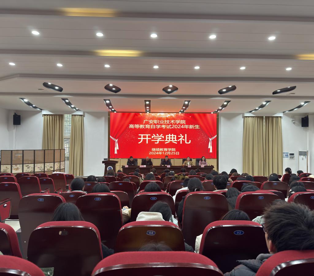 12月25日下午,学校高等教育自学考试2024年新生开学典礼在希贤厅隆重举行。继续教育学院院长王秋林出席典礼,典礼由继续教育学院副院长甘胡委主持。