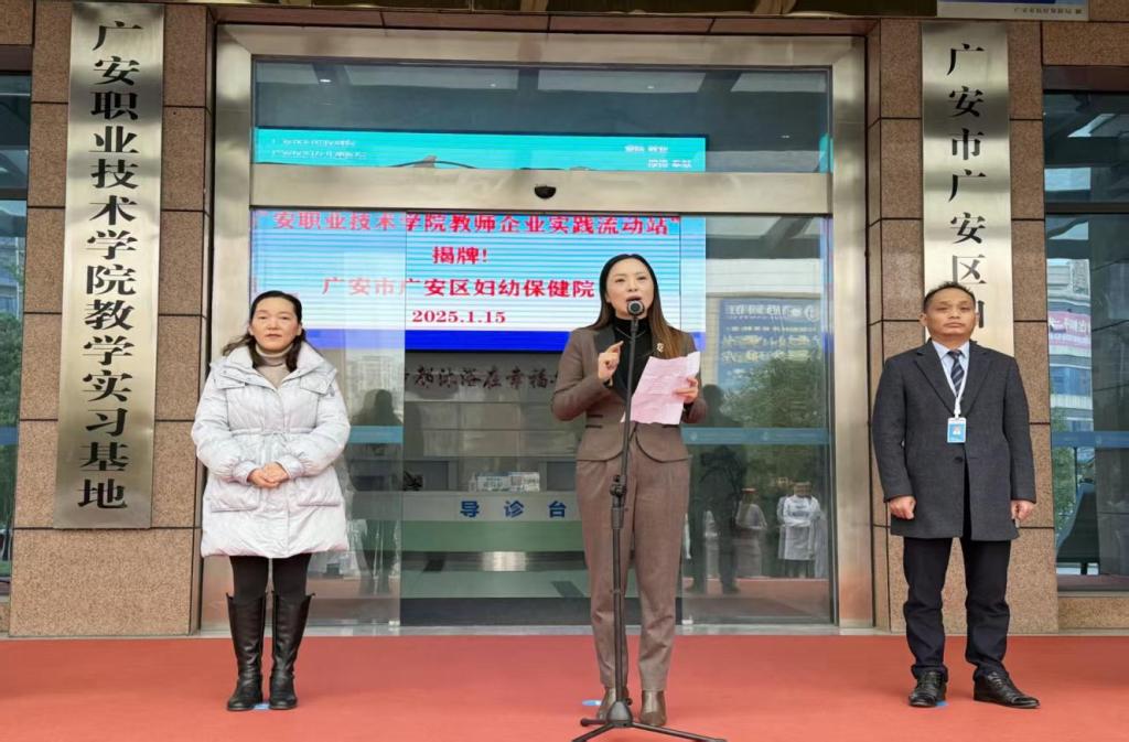 仪式上,杨书琴对本次活动致辞。她表示,此次与广安区妇幼保健院的合作是医学院发展历程中里程碑式的一次合作,标志着双方在医学教育与医疗实践结合方面迈出了坚实的一步。共建“教师企业实践流动站”将实现资源共享、优势互补,医院的专家和技术骨干将走进校园,参与教学和人才培养工作,为学生传授丰富的临床经验和专业知识。同时,学院的教师也能为医院提供科研支持和理论指导,实现医教融合、教学相长。