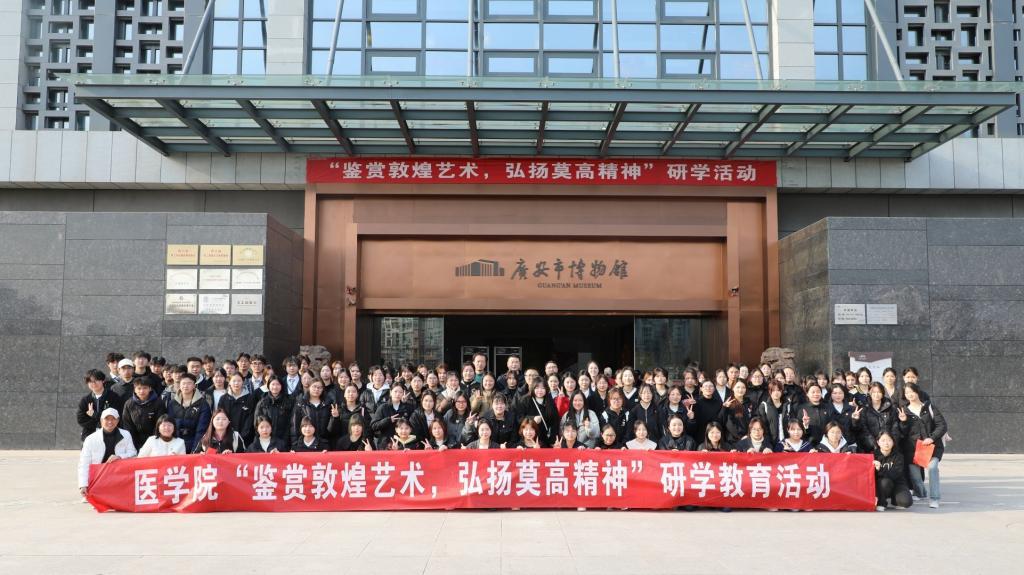 活动启动当天,医学院的近200名师生率先参与了此次研学之旅。在博物馆内,学生们通过参观“大漠长歌—敦煌石窟艺术特展”,深入了解了敦煌艺术的瑰宝与莫高精神的内涵。博物馆的专业讲解员为学生们提供了详细的解说,帮助他们更好地领悟敦煌艺术的独特魅力,同时研学活动还安排了体验艺术拓片、观看《大敦煌》纪录片等研学课程。