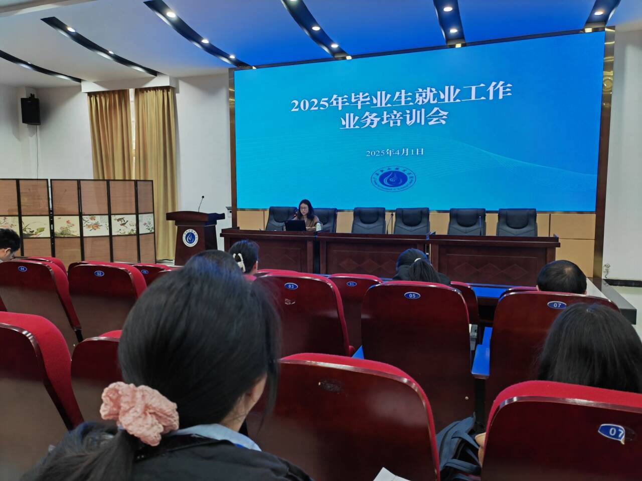 为扎实推进学校就业工作,提升各二级学院就业工作人员业务能力,4月1日下午,学校在希贤厅召开了2025年就业工作业务培训会。会议由招生就业处处长杨小锋主持,各二级学院、继续教育学院(武胜教学部)及招生就业处就业工作人员参加会议。