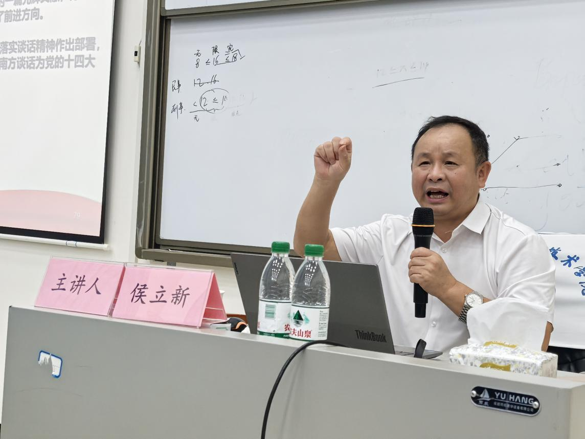 侯立新以“高举改革开放伟大旗帜”为主题,结合自身丰富的党史研究经验和地方发展实践,深入阐述了改革开放的历史背景、伟大成就和深远意义。讲座中,他通过详实的史料和生动的案例,系统梳理了改革开放以来中国在经济、政治、文化、社会等领域的突破性进展,分析了改革开放对地方发展的推动作用,强调新时代青年应深刻理解改革开放精神的内涵,以实际行动践行使命担当。