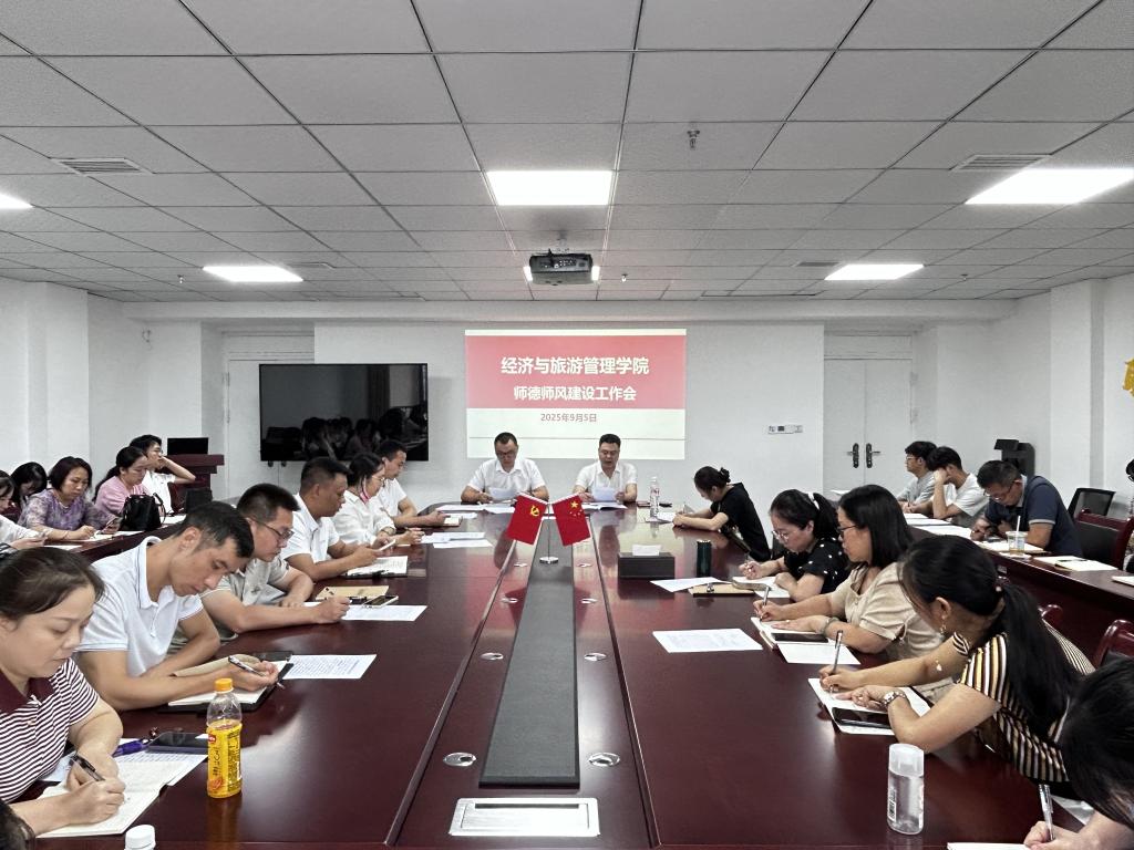 9月5日下午,经济与旅游管理学院在经管大楼1101会议室召开师德师风建设专题工作会议。会议由学院党总支书记吴小平主持,全院教职工参加会议。