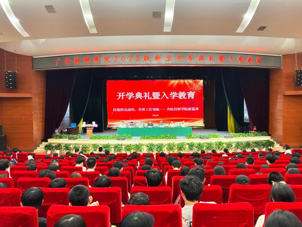 技能照亮前程,劳模工匠领航。9月10日晚,广安技师学院2025级新生开学典礼暨入学教育在庄严的国歌声中拉开了序幕。bv伟德国际1946党委委员、副校长袁驰出席典礼,学院全体学生管理人员及新生参加典礼。
