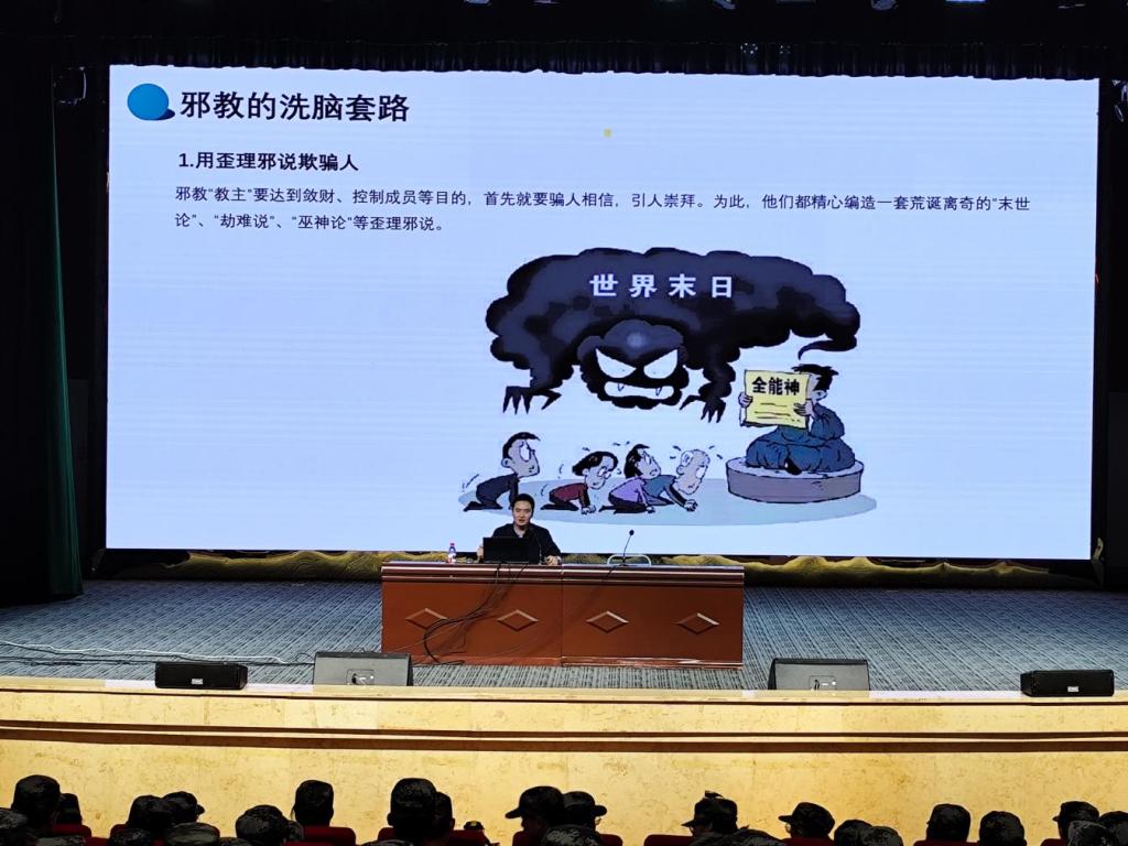 讲座中,吕飞老师围绕“崇尚科学,反对邪教”主题,凭借其丰富的心理咨询经验和专业的理论知识,为师生带来一场深入浅出的精彩讲解。他首先从邪教的定义与基本特征入手,明确指出邪教是神化教主、实施精神控制、危害社会的非法组织,并详细剖析了其“反科学、反社会、反人类”的本质。