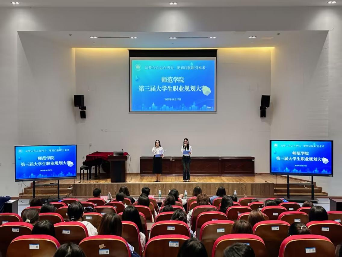 为全面提升我院学生职业规划认知与就业竞争力,引导其树立科学的职业发展观,10月17日下午,师范学院在岳秀楼翔凤厅成功举办第三届“筑梦青春志在四方,规划启航职引未来”大学生职业规划大赛决赛。赛前,党总支书记彭松林为比赛致辞。