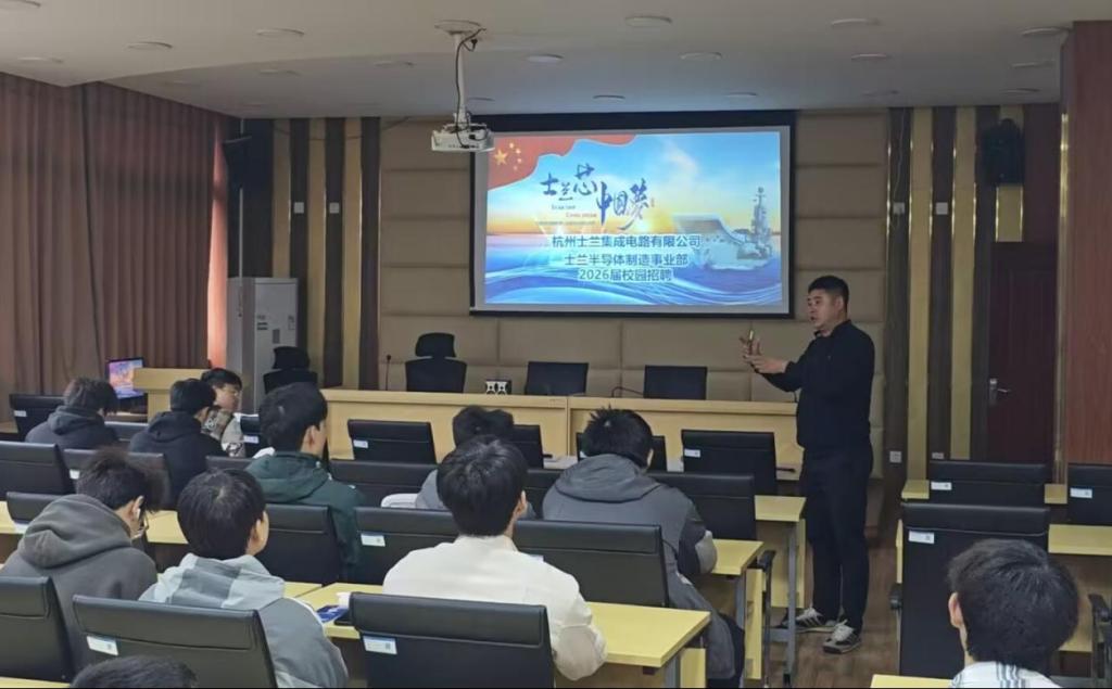 杭州士兰集成电路有限公司则围绕半导体芯片设计、制造与封装测试等环节,介绍公司在功率器件、模拟芯片等方向的产品布局与技术积累。招聘负责人为同学们解读了公司的行业优势,详细阐述了公司提供的岗位类型及发展空间,让同学们对未来的职业成长有了直观的了解。