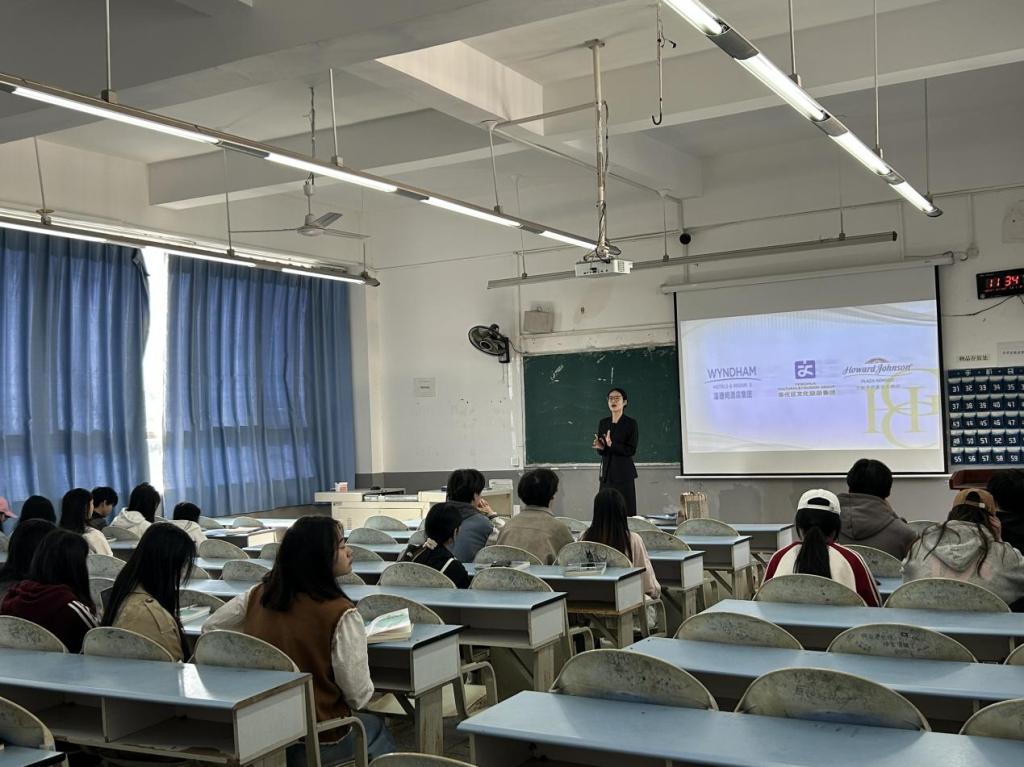 为进一步拓宽毕业生就业渠道,精准对接企业用人需求,助力学生实现高质量就业,10月28日,宁波华侨豪生大酒店在明德楼411教室开展专场招聘活动。酒店人事经理陈雅清带队到场宣讲招聘,经济与旅游管理学院酒店与旅游专业毕业班学生积极参与此次招聘活动。