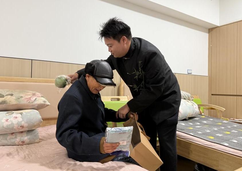 演出结束后,学生们主动走进老人寝室,开展暖心交流与慰问。他们耐心倾听老人的故事,悉心询问身体与生活状况,协助整理物品、打扫卫生,并送上精心准备的艾草锤、毛巾等慰问礼品。一句句真诚的问候、一次次温暖的握手,让整个康养中心洋溢着浓浓的温情与暖意。