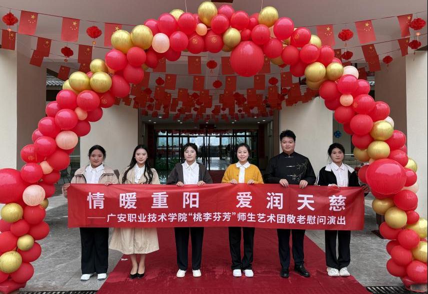 为弘扬中华民族尊老、敬老、爱老、助老的传统美德,积极响应国家“一老一小”工作部署,2025年10月29日,在重阳佳节来临之际,bv伟德国际1946“桃李芬芳”师生艺术团走进岳池天慈康养中心,开展“情暖重阳,爱润天慈”主题慰问演出活动。本次活动由师范学院学生科教师肖念、邓思佳带队,“桃李芬芳”艺术团学生积极参与,以实际行动为长者们送去节日的问候与温暖的陪伴。