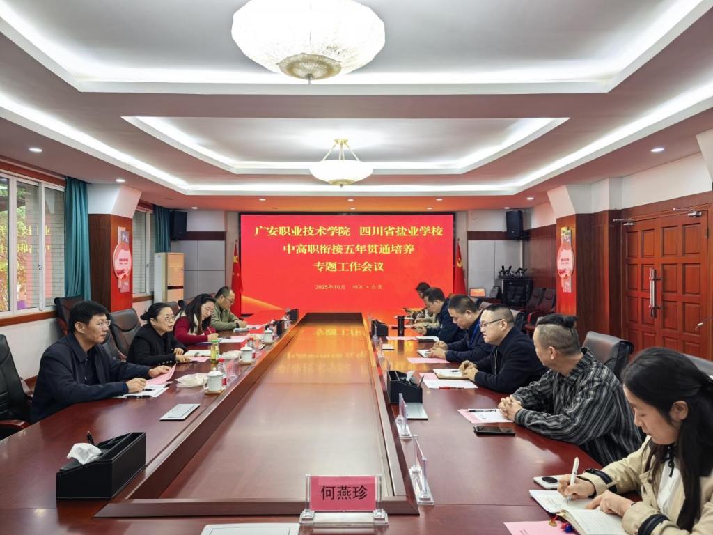 10月31日,前往四川省盐业学校,重点对接应用化工技术专业的中高职衔接工作。双方就五年贯通培养的招生录取标准、教学计划衔接、学生转段考核机制等关键环节达成了初步共识,并明确将共同制定一体化人才培养方案,确保学生从中职到高职阶段“无缝衔接”。