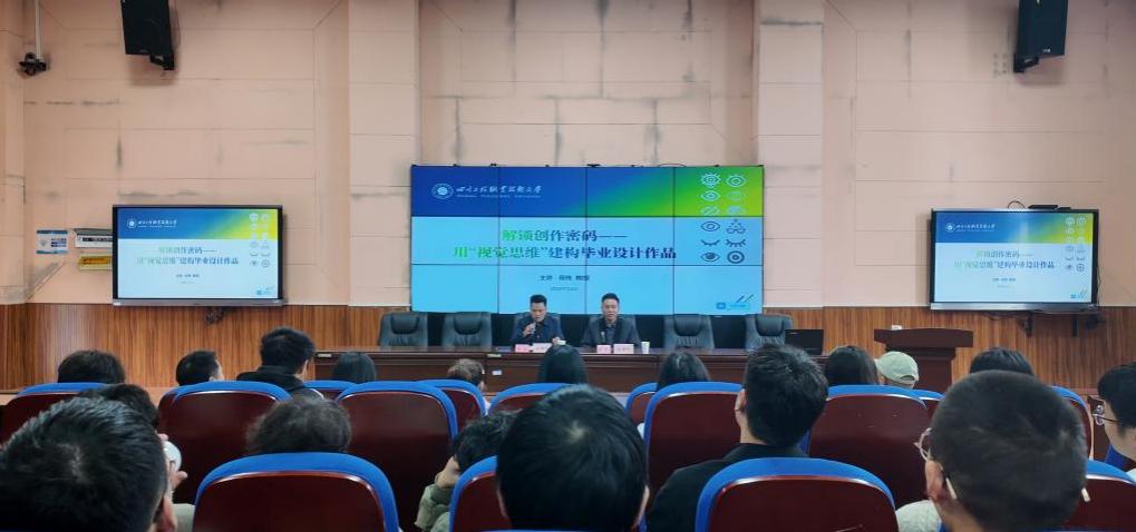 11月11日下午,艺术与设计学院在致用楼紫金厅顺利举办“解锁创作密码:用‘视觉思维’重构毕业设计”专题指导讲座。本次讲座特邀四川工程职业技术大学艺术学院副院长、教授何伟担任主讲嘉宾,学院副院长黄政主持,2026届全体毕业生及各专业指导教师齐聚现场,共同探寻毕业设计创新之道。