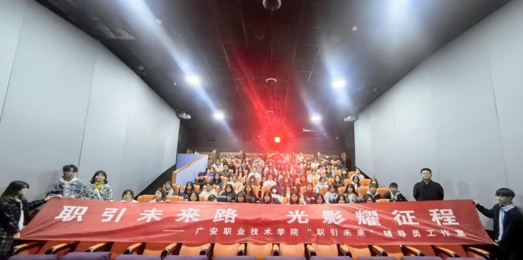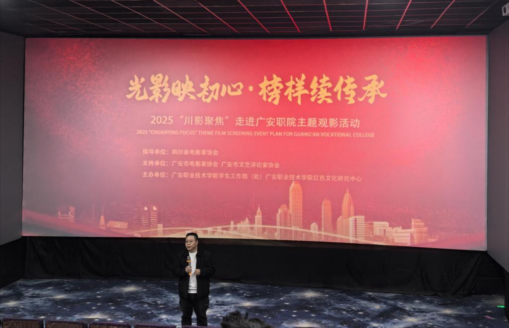 11月18日下午,由四川省电影家协会支持,广安市电影家协会、广安市文艺评论家协会指导,学校党委学生工作部、红色文化研究中心、“职引未来”辅导员工作室主办的2025“川影聚焦”主题观影活动在广安市星美国际影城举行。活动以纪录电影《长大后,我就成为你》为教材,通过“观影+主创交流”形式,为150名师生代表打造一堂别开生面的思想政治实践课。