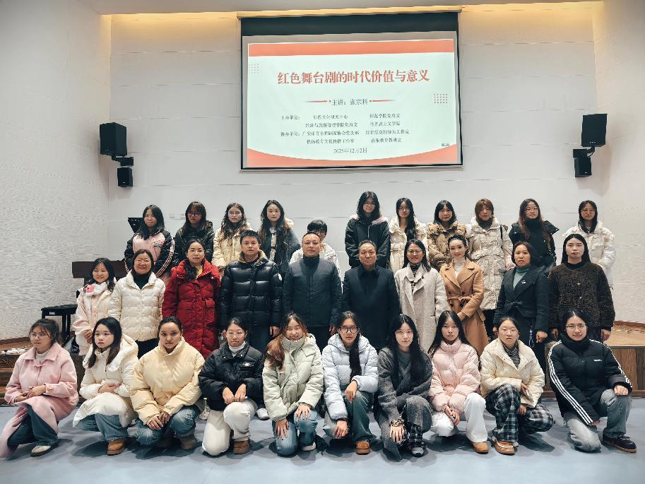 12月2日下午,学校在滨江校区岳秀楼翔凤厅成功举办“红色舞台剧的时代价值与意义”专题讲座。本次讲座由学校红色文化研究中心、师范学院党总支、经济与旅游管理学院党总支及马克思主义学院联合主办,广安市音乐舞蹈家协会党支部、学校红育经英辅导员工作室、优扬教育文化传播工作室、音乐教育教研室等协办,特邀一级作曲、广安市文联副主席、市音乐舞蹈家协会主席、学校客座教授张宗科担任主讲。讲座由红色文化研究中心主任石乾福主持。